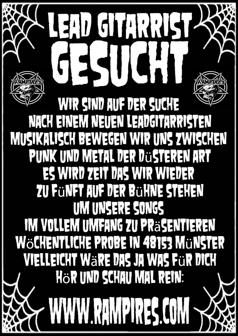 ROOM 3327 sucht Drummer – Rock | Alternative | Indie | Psychedelic | Pop-Rock Beitragsdatum 29.03.2026 In Uncategorized Trete ein… Kontakt: room3327.ms@gmail.com Sänger, Screamer, Growler sucht Death / Melodic Death Metal Band Piece Of Evidence